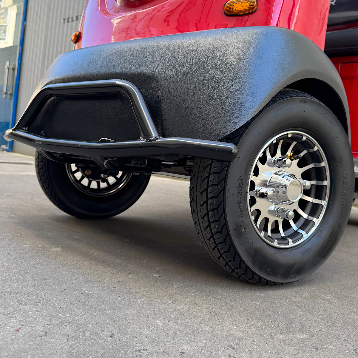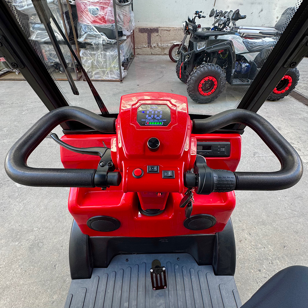 | Допълнителна информация | Удобен волан, задно предаване, с диференциал - брой места: 2 - местна, спирачна система: 1 крачна и 2 ръчни спирачки за по-удобно спиране - павна регулировка на скоростта с потенциометър 5км/ч-45км/ч + задна скорост - аварийни светлини - странични светлоотразители - пълна светлинна окомплектовка ( преден двоен LED фар тип ЛУПА , мигачи- предни, задни, стопове, габарити) - клаксон - Подарък- 2 бр. огледала за задно виждане + 2бр. дистанционни с аларма и безконтактно включване + предна пазарска кошница за пазаруване + ГОЛЯМИ карго отделения зад седалките за багаж |