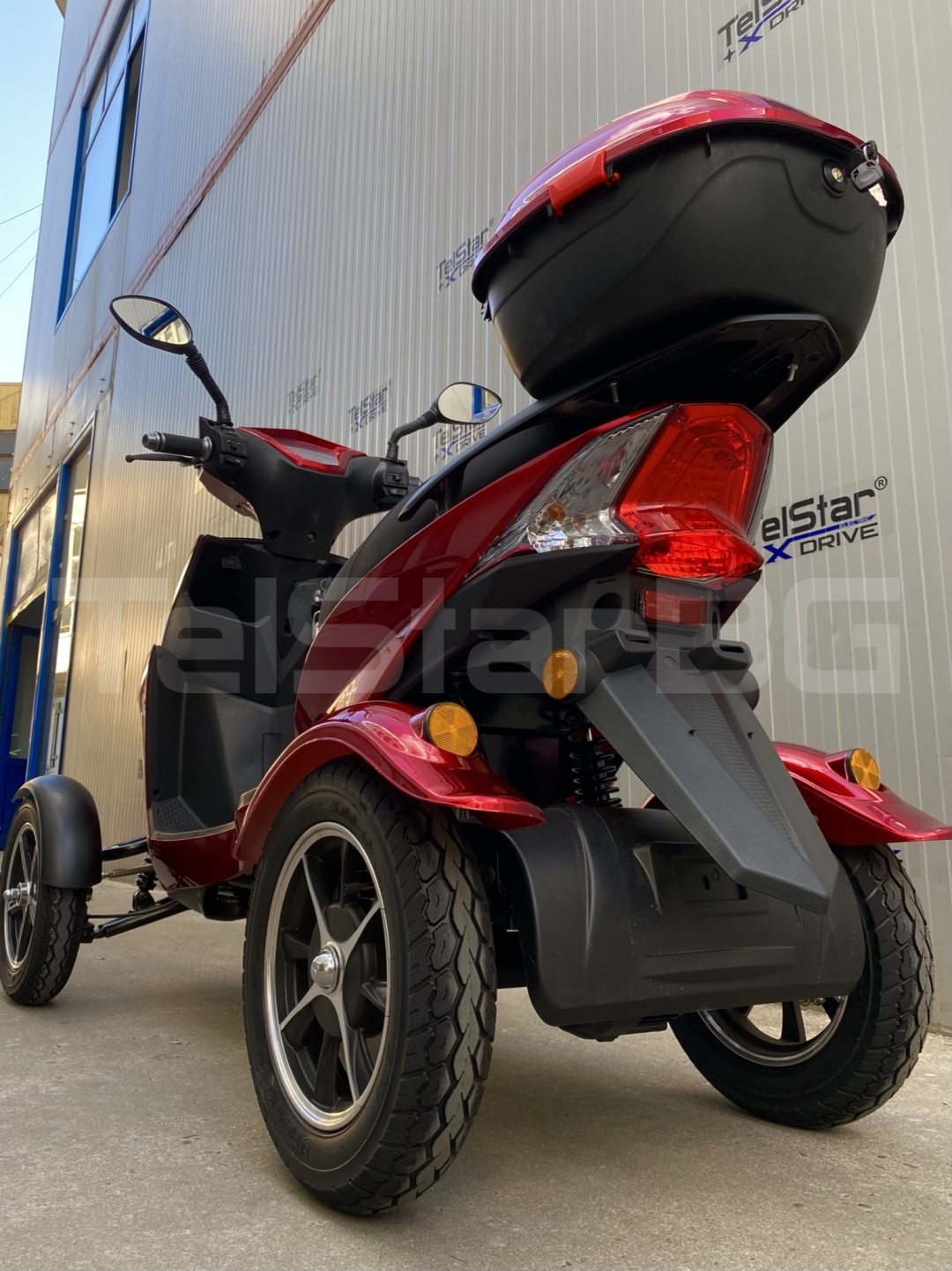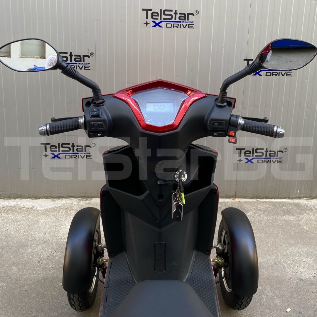 Допълнителна информация - пълна светлинна окомплектовка, къси, дълги, габарити, мигачи, стопове - клаксон - 3 скорости + 1 задна - светещ дисплей с показание за скорост, пробег, ниво на батерията, светлини и др. - голям заден кош за багаж със заключване - дискова спирачна система - огледала за предно и задно виждане - независимо предно окачване MACPHERSON - с включено зарядно устройство в комплекта - 2 бр. ключове с 2 бр. дистанционни + аларма и имобилайзер подарък към тях при закупуване! - налични цветове: син, червен Подарък голям заден куфар за багаж със заключване при закупуване!