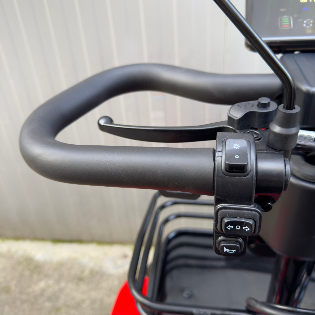 | Допълнителна информация | Удобен волан, задно предаване, с диференциал - брой места: 3 - местна , спирачна система: 1 крачна и 2 ръчни спирачки за по-удобно спиране + магнитно спиране + задна скорост - аварийни светлини - странични светлоотразители - пълна светлинна окомплектовка ( преден двоен LED фар тип ЛУПА , мигачи- предни, задни, стопове, габарити) - клаксон - метална кошница за багаж отпред и отзад - Подарък- 2 бр. огледала за задно виждане + 2бр. дистанционни с аларма и безконтактно включване + Професионално процесорно зарядно за модела |