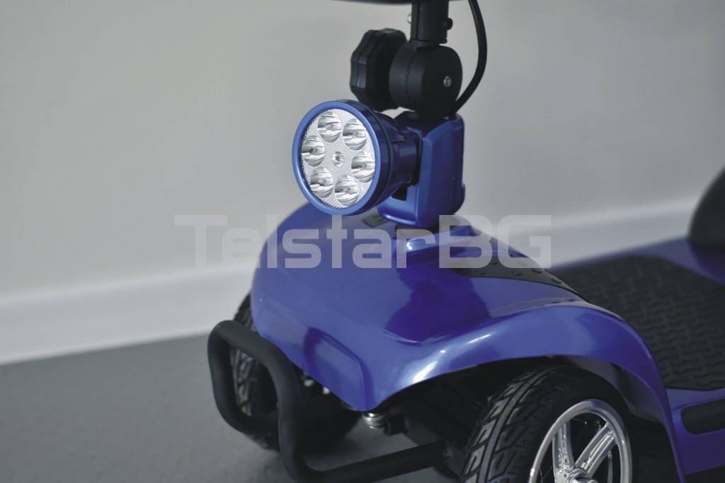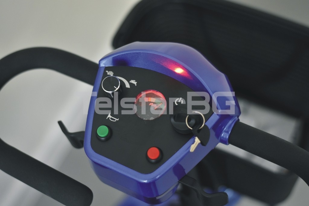 | Допълнителна информация | спирачка система: електромагнитна спирачна система,пътен просвет: 88мм,Контролер: 24V, 50A Зарядно: включено в комплекта, DC24V 2A Макс. ъгъл на изкачване: 15°,- мощен преден LED фар - преден ролбар против удар - удобна и широка пазарска кошница - луксозна кожена седалка с вдигащи се подлакътници - регулация на височината на седалката - задно помощно колело против преобръщане - клаксон - регулация на скоростта чрез потенциометър - показание за нивото на батерията - USB порт за зареждане на мобилни устройства - лесно сгъване и разгъване с няколко движения с цел компактност и лесно транспортиране |