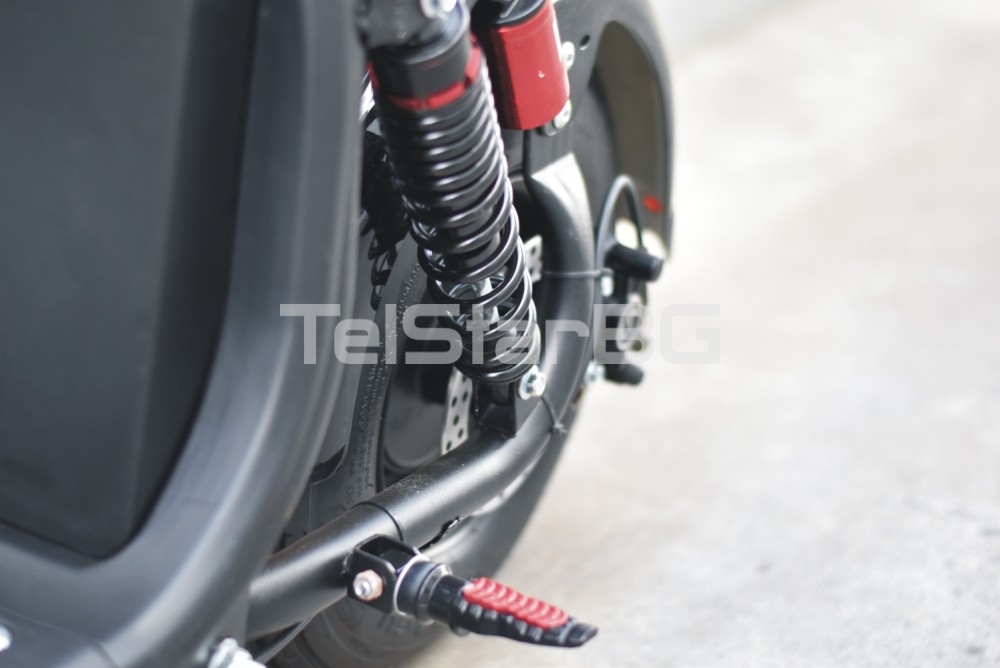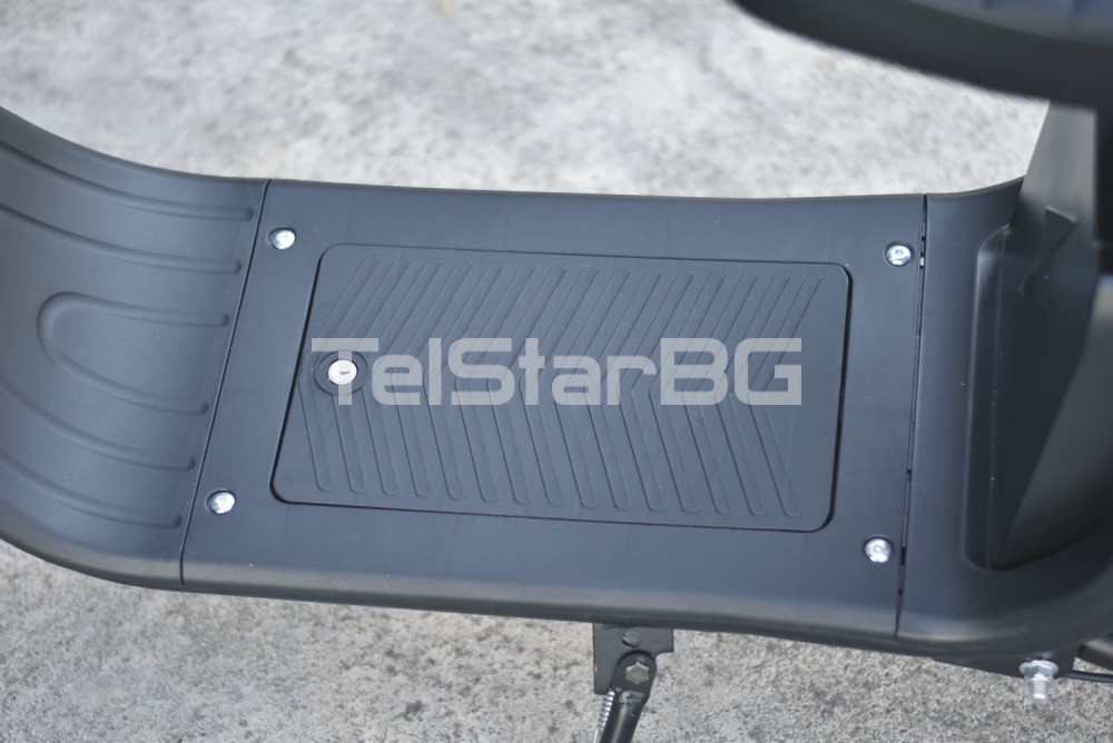 Допълнителна информацияSTART/STOP бутон - двойна задна седалка - предна амортисьорна вилка - телескопични задни амортисьори с големи въздушни цилиндри - дисплей с показание за ниво на батерия, скорост, пробег, моментно напрежение на двигателя, светлини, скорости и др. - пълна светлинна окомплектовка- LED преден фар + габарит, стоп, мигачи - клаксон * Важно: скутера има допълнителен слот под краката с инсталация за поставянето на втора батерия за по- дълъг пробег *Само сега, при закупуване на скутера получавате безплатно и: - USB за зареждане на мобилни устройства - стойка държач за мобилни сутройства - 2 бр. дистанционни с аларма Допълнителни опции: * опция за допълнителна батерия 13Ah +550лв. (+35км. пробег) * опция за допълнителна батерия 21Ah + 750лв. (+60-70км. пробег)