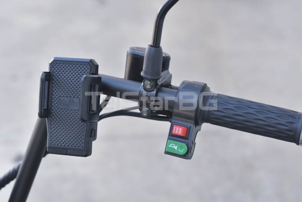 Допълнителна информация- двойна задна седалка - предна амортисьорна вилка - телескопични задни амортисьори с големи въздушни цилиндри, марка DPS / HONDA, YAMAHA/ - дисплей с показание за ниво на батерия, скорост, пробег, моментно напрежение на двигателя, светлини, скорости и др. - LED стоп - LED мигачи - LED габарити - LED преден фар - допълнителни LED предни фарове с лупа- 2бр. * Важно: скутера има допълнителен слот под краката с инсталация за поставянето на втора батерия за по- дълъг пробег *Само сега, при закупуване на скутера получавате безплатно и: - USB за зареждане на мобилни устройства - стойка държач за мобилни сутройства - 2 бр. дистанционни с аларма Допълнителни опции: * опция за допълнителна батерия 13Ah +550лв. (+35км. пробег) * опция за допълнителна батерия 21Ah + 749лв. (+50км. пробег) * пробегът може да варира според теглото и терена