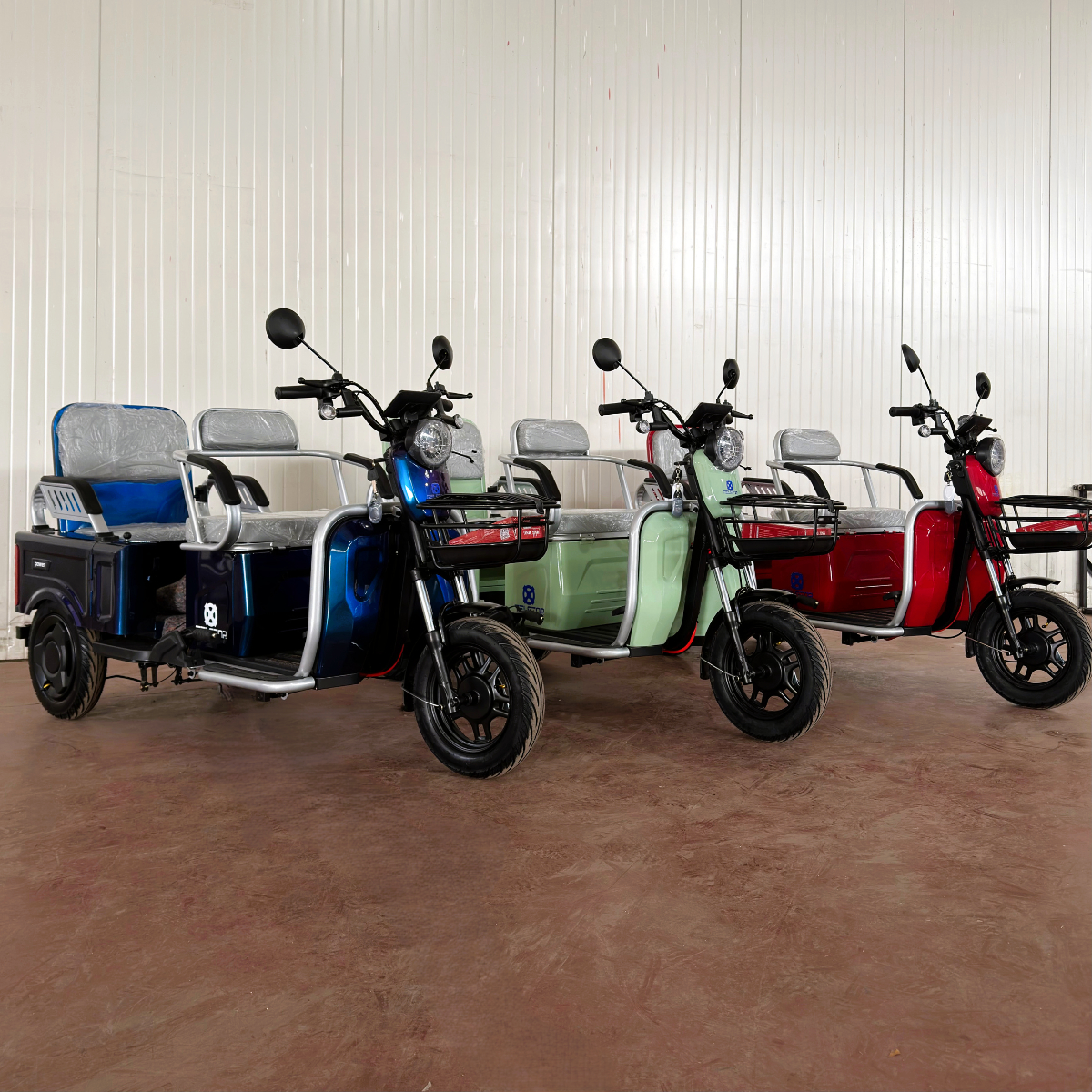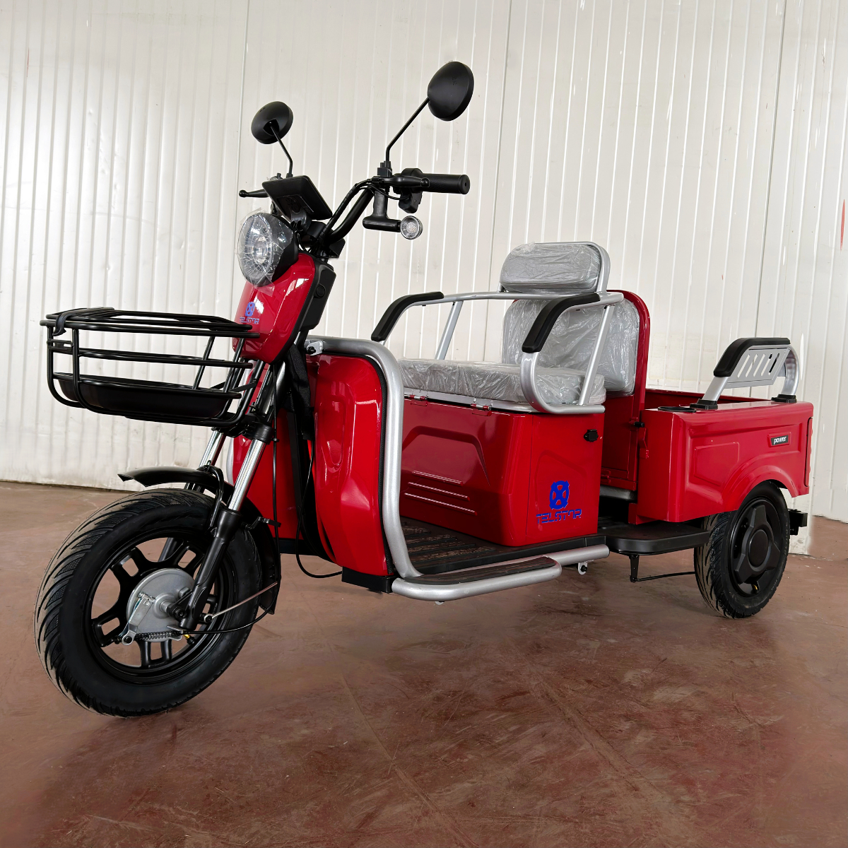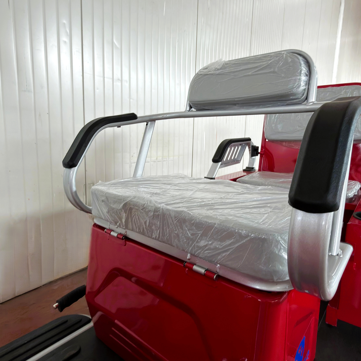 Оригинална електрическа триколка- две места + карго отделение с изключително висококачествена изработка. Задната седалка се превръща в удобно карго багажно отделение с 1 движение. Прахово нанасяне на боята по електролитна технология. Триколката се предлага и във вариант със лесна за монтаж и демонтаж покривна конструкция.