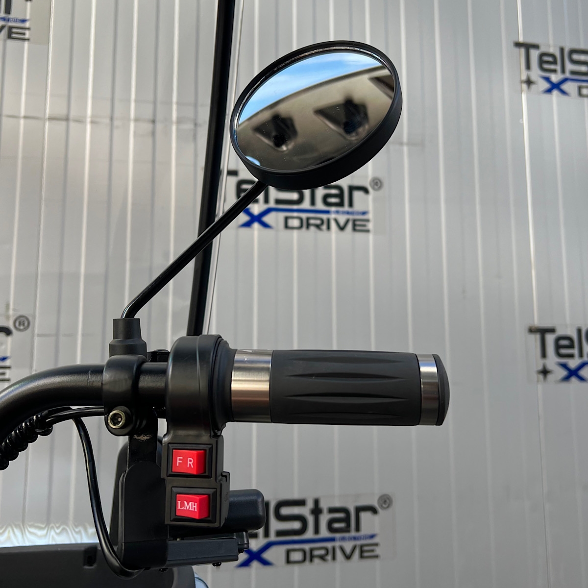 | Допълнителна информация | - задно предаване, с диференциал - покрив + предно стъкло - клаксон - луксозна кожена седалка + луксозна кожена облегалка - брой места: 3- местна - спирачна система: 1 крачна и 2 ръчни спирачки за по-удобно спиране - 3 скорости - аварийни светлини - ГОЛЯМ дигитален LCD дисплей тип apple показващ над 5 параметъра - странични светлоотразители - задна скорост - пълна светлинна окомплектовка ( преден LED фар тип ЛУПА , мигачи- предни, задни, стопове, габарити) - клаксон - метална кошница за багаж отпред и отзад Подарък- огледала за задно виждане 2 броя при закупуване! |