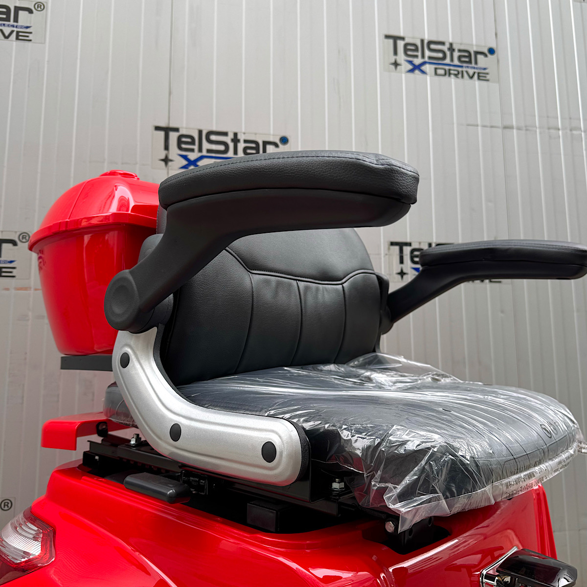 Допълнителна информация- Луксозна седалка със самостоятелна мека облегалка! - Големи алуминиеви джанти - С 3 предни скорости + 1 задна - спирачна система: предна дискова + задни барабанни спирачки - голям светещ LCD екран с показания за скорост, ниво на батерия, изминато разстояние, светлини и др. - предни и задни амортисьори - голямо задно багажно отделение - повдигаеми подлакътници - зарядно устройство включено в комплекта