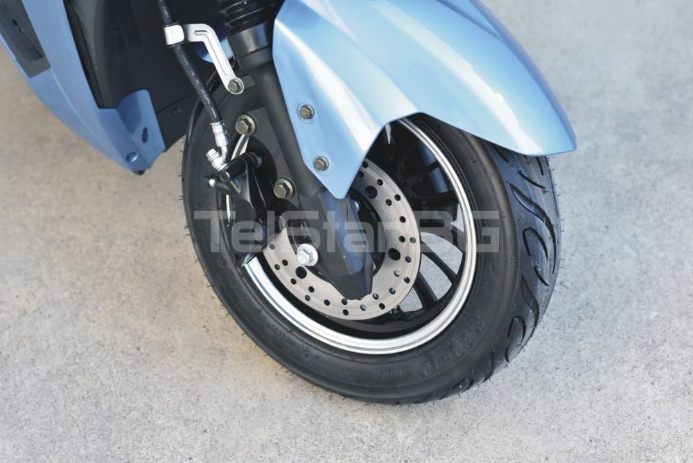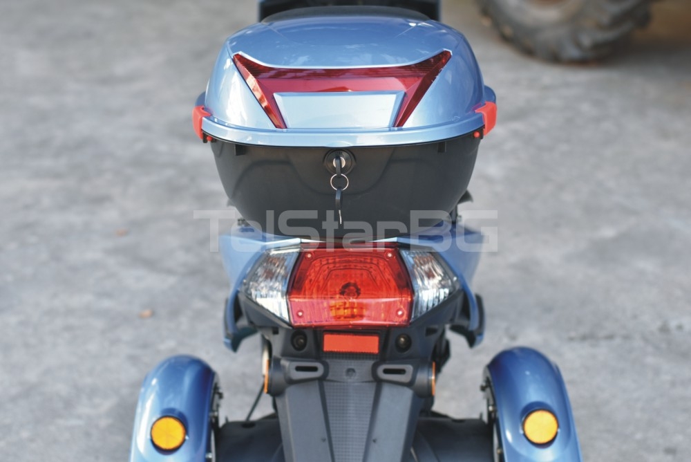 Допълнителна информация- пълна светлинна окомплектовка, къси, дълги, габарити, мигачи, стопове - клаксон - 3 скорости + 1 задна - светещ дисплей с показание за скорост, пробег, ниво на батерията, светлини и др. - с подарък огледала за задно виждане при закупуване! - голям заден кош за багаж със заключване - спирачна система: предна хидравлична дискова спирачка, задни барабанни спирачки - окачване- предни/задни амортисьори - с включено зарядно устройство в комплекта - 2 бр. ключове с 2 бр. дистанционни + аларма и имобилайзер подарък към тях при закупуване! - налични цветове: светлосин металик, червен металик, сив металик (хамелеон), бял , необорудвано тегло 50кг